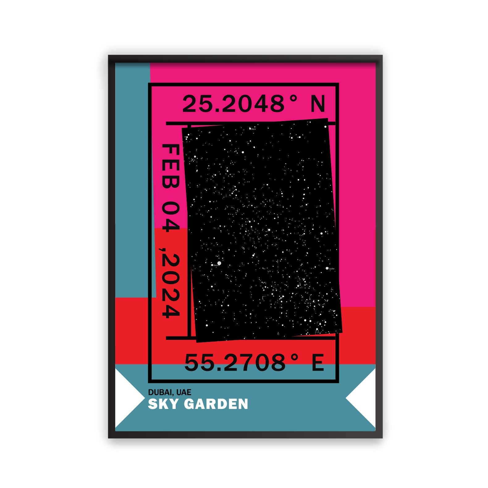 Vibrant, layered, and striking — Sky Garden captures your moment under the stars with color-blocked energy and modern edge. A fully personalized starmap print for those who want their memories to stand out.